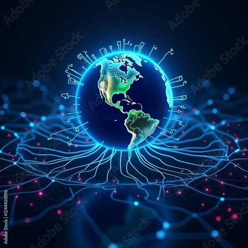 © Akhi Akhter, Fototapeta premium Global Network Connections earth