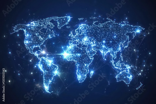 © nur, Fototapeta premium Global network connections, illuminated world map, data flow background, technology concept