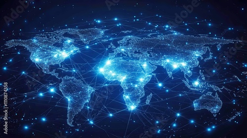 © budi, Obraz premium Global Network Connections Illuminating World Map