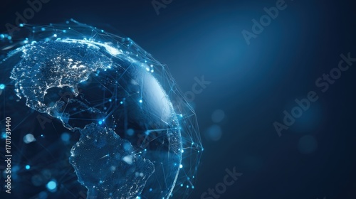 Obraz premium Global Network Connectivity: Abstract Earth with Glowing Connections,...