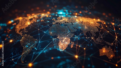 Obraz premium Global network connectivity visualization digital world map infographic...
