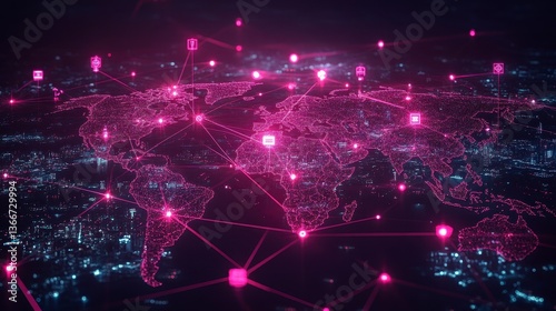 © aun, Obraz premium Global Network Connectivity with Digital Map and Data Visualization