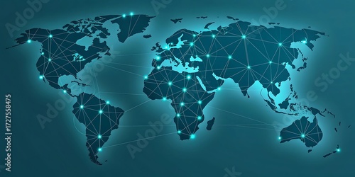 Fototapeta premium Global Network Connectivity World Map with Interconnected Points Representing...