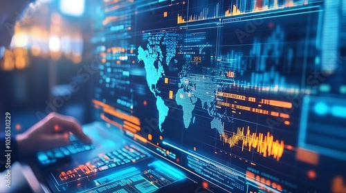 © Christopher, Obraz premium Global Network Data Analysis Plain Textured Background for Web Design and Copy