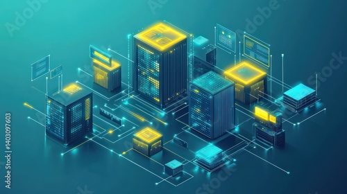 © Randu, Fototapeta premium Global network data center servers digital technology background futuristic illustration