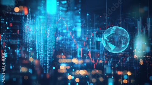 Obraz premium Global Network, Digital Data, Futuristic Cityscape