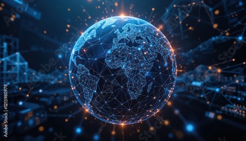 Obraz premium Global Network, Digital Earth, Data Visualization, Interconnected World, in...