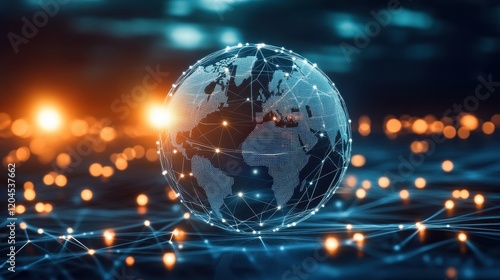 © masmadz99, Obraz premium Global Network Digital World Interconnection Visualization