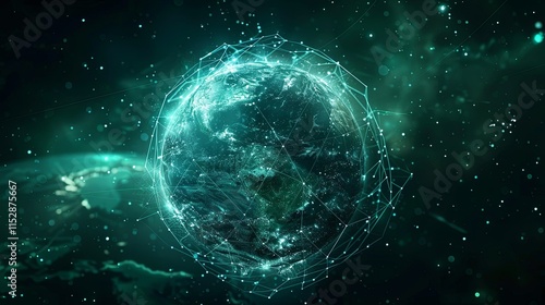 Fototapeta premium Global Network: Earth Encased in a Teal Digital Constellation