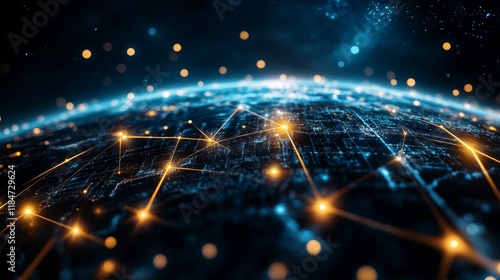 © Murda, Obraz premium Global network, illuminated lines, interconnected nodes.