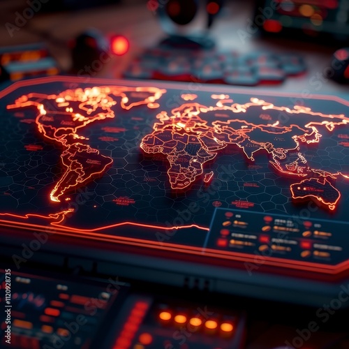 © A4719, Obraz premium Global Network Map Futuristic Technology Digital World Illuminated Map