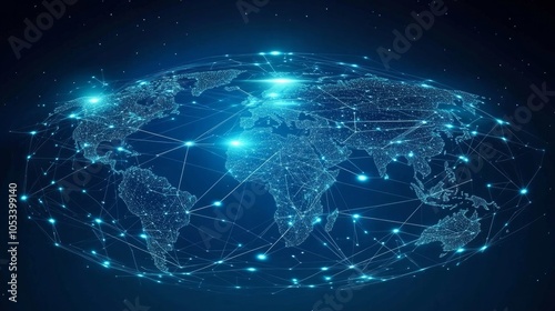 © Chingiz, Obraz premium Global network map with points and connecting lines.