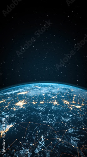 Obraz premium Global network of light connecting continents seen from space above starry...