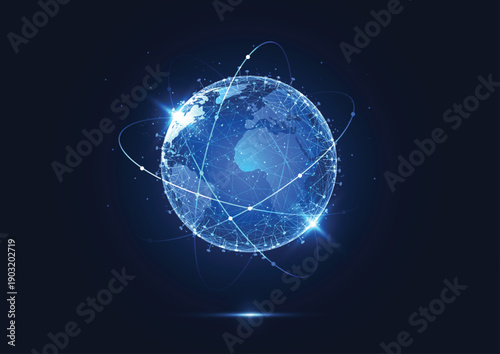 © royyimzy, Obraz premium Global network technology connection. World map point and line composition concept of global business. Vector Illustration