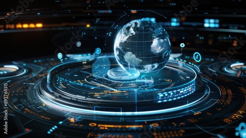 Obraz premium Global Network Technology, Digital Earth, Futuristic Interface