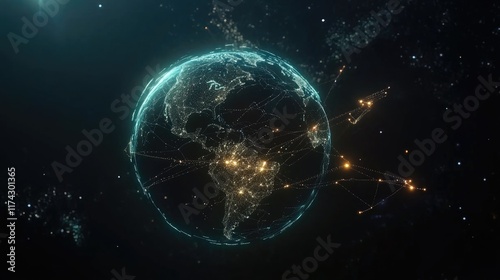 Obraz premium Global Network Visualization of Earth with Illuminated Connections