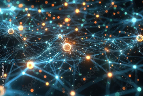 © Saifullah, Fototapeta premium Global network visualization with data points interconnected and neural connections glowing.