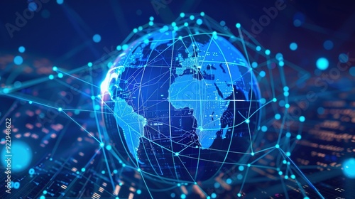 © Ahmad-Muslimin, Obraz premium Global Network with Blue Lines and Nodes