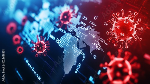© Sukifli Dakheng, Obraz premium Global pandemic impact visualization with virus graphics