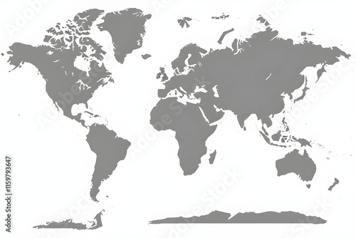 Naklejka premium Global Perspective: A simple, detailed grayscale world map. Perfect for presentations, reports, and educational materials.