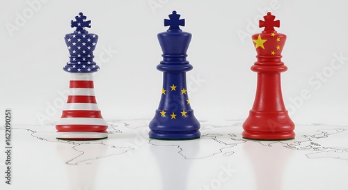 © Syartinolky | Works, Naklejka premium Global power competition concept with chess pieces of USA, EU and China
