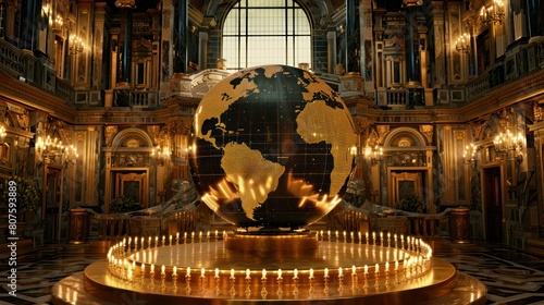 Obraz premium global stock market chart superimposed onto a historical backdrop,...