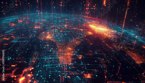 Obraz premium Global supply chain security risks digital landscape infographic cyber...