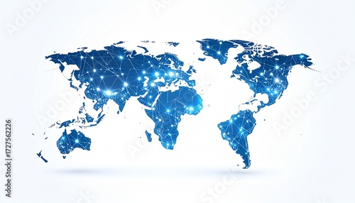 Fototapeta premium Global technology network map with glowing blue interconnected points,...
