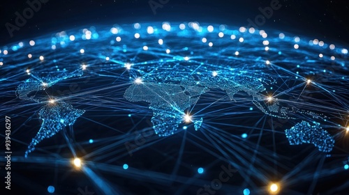 Obraz premium Global Telecommunication Network: Interconnected Web of Data Flow