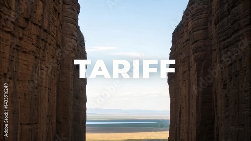 © Gibster, Fototapeta premium Global trade and tariff impacts. A rocky canyon landscape with the word "TARIFF" prominently displayed in the foreground.