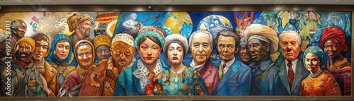Naklejka premium Global Unity Mural A largescale mural depicting people from around the world...