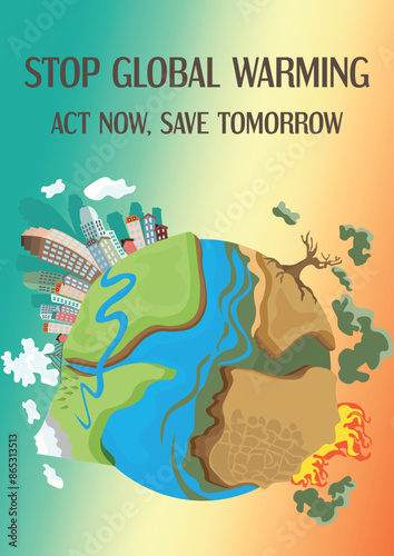 © Marina, Naklejka premium Global Warming Poster Design Flat Vector Illustration