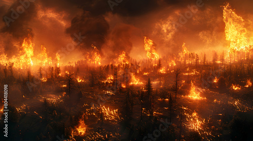 Obraz premium Global Warming Visuals: Stark Warning of Wildfires Exacerbated by Carbon Pollution