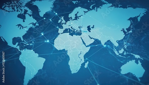 © MdMajlur, Fototapeta premium Global world map with digital verticle lines