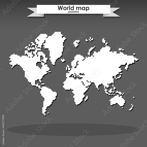 © Markoff, Obraz premium Global world pixelated vector map. Pixel Earth icon.