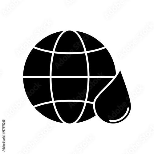 © Firly, Naklejka premium globe and water drop icon, symbol of world water day. vector isolated on white background, simple and modern design.