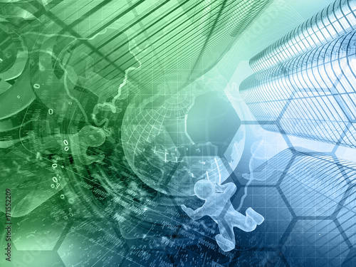 © archerix, Obraz premium Globe, buildings and mans