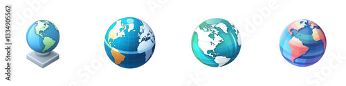 © Sheton, Fototapeta premium Globe icons, various views, digital art isolated on white or transparent png