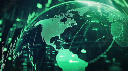 Fototapeta premium Globe in the concept of global economic network, connectivity in the digital...