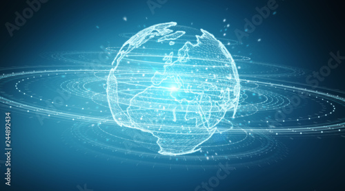 Obraz premium Globe network hologram with Europe map 3D rendering