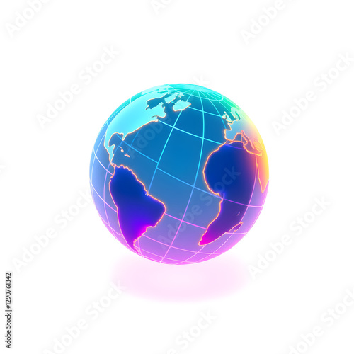 © Tark, Fototapeta premium Globe on stand holographic 3D icon. neon symbol vector illustration isolated on white background. Generative AI