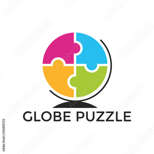 Obraz premium Globe puzzle logo design vector template