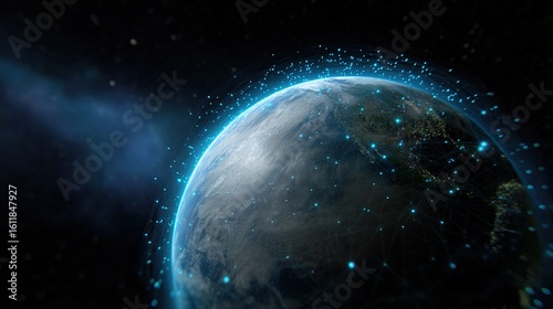 Obraz premium Globe with Digital Network Connections and Glowing Elements