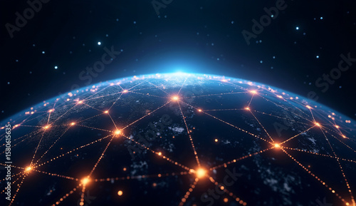 © jiale, Obraz premium Globe with interconnected network lights against a starry background