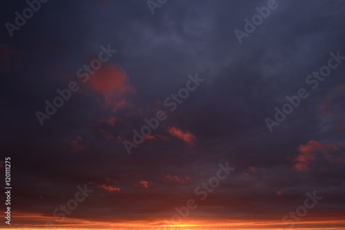 © yarvin13, Fototapeta premium Gloomy dark blue sky in flames Sunset