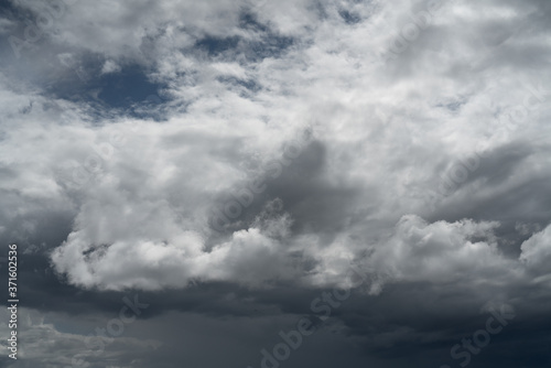 Obraz premium Gloomy gray rain clouds in the sky. Atmospheric natural background.