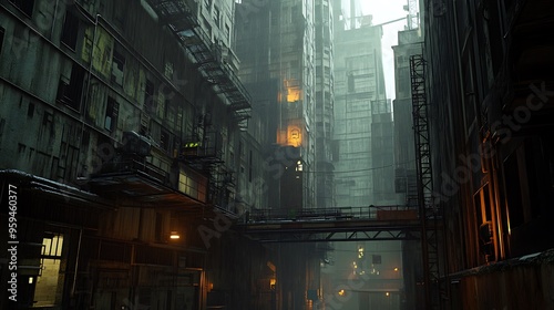Fototapeta premium Gloomy Industrial Alleyway in Futuristic City