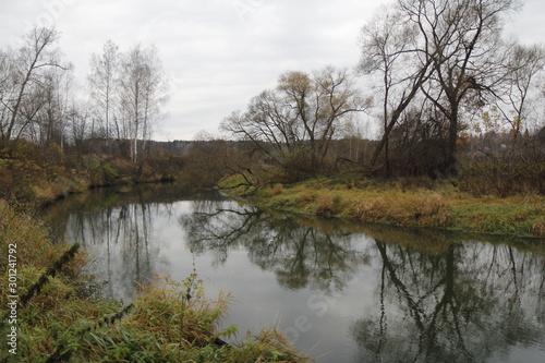 © Irina Solonina, Obraz premium Gloomy morning at Russian village in October