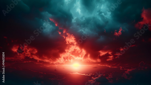 © Wagner, Naklejka premium Gloomy Sunset With Cinematic Treatment. Stylis