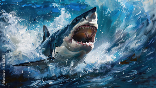 © Abu, Obraz premium Glorious A cartoon shark with a shark head and teeth showing